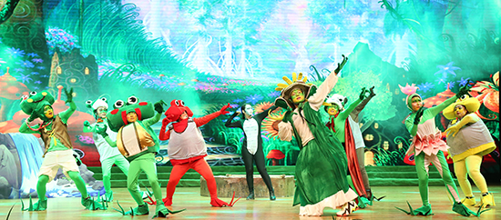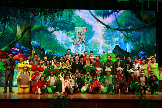 表彰大会结束后,伟德官网“小雨点”儿童剧社进行了首演。此次出演的儿童剧《青蛙王国之傻蛙迪卡》是根据伟德bv国际体育和吉林纪元时空动漫游戏科技股份有限公司的原创3D动画电影《青蛙王国》改编的儿童剧目。“小雨点”儿童剧社作为伟德官网着力打造的又一个精品社团,致力于通过儿童剧这种喜闻乐见的表演形式,给孩子们带来快 乐、希望和梦想。剧社的全部演员均由学校表演系和播音系学生组成,更突显出伟德官网师生的活力和创造力,以及《青蛙王国》系列的鲜活生命力。