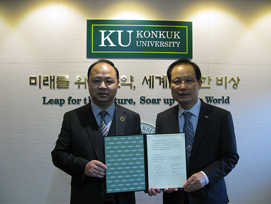 伟德官网董事长、校长郑立国与韩国建国大学校长宋熹永签署合作办学协议
