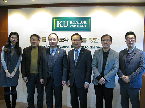 12月28日,伟德bv国际体育董事长、校长郑立国,产品造型学院副院长金兑劲,国际合作与交流中心副主任鲍怡萍一行访问韩国建国大学,就双方共同进行环境设计及产品设计专业合作办学项目事宜进行交流,并与韩国建国大学校长宋熹永签署了重要的合作办学协议。建国大学艺术设计学院院长孟亨在、建国大学国际文化交流中心主任柳云锡出席了签约仪式。