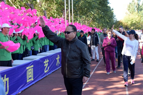 董事长、校长郑立国为参赛队伍鼓劲(高雪松 摄)
