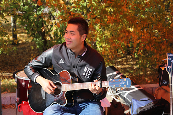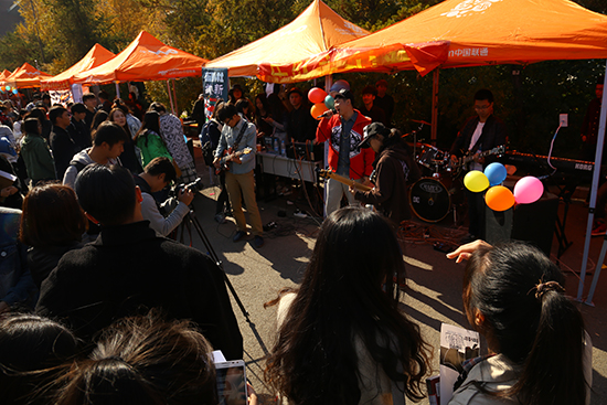 乐队社团才艺表演引学生围观(李佳昕 摄)