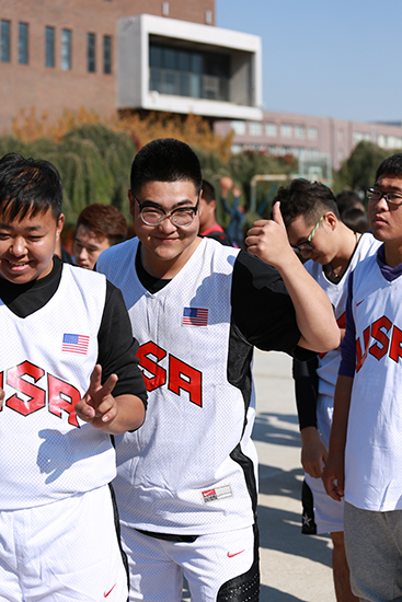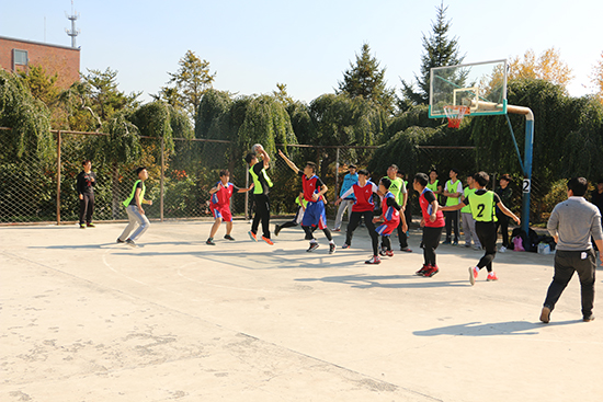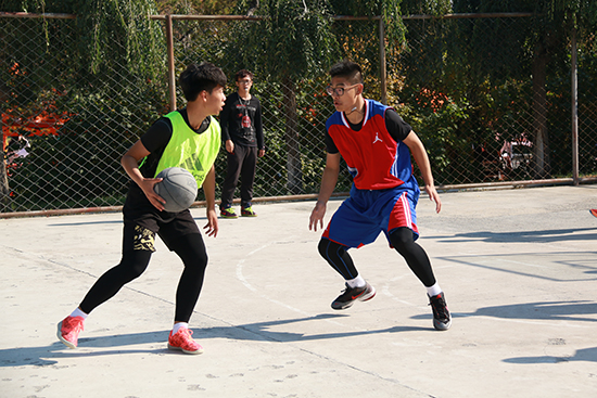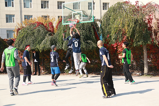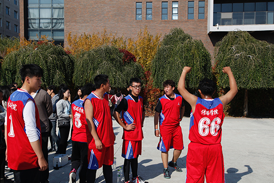 “友谊第一、比赛第二”,“团队第一、个人第二”,各学院的篮球队员们身着统一的队服,互相握手问好。随着裁判员的一声哨响,双方队员热情高涨,展开了一轮轮的投球防守。队员们表现出强烈的取胜欲望,进攻和防守动作帅气利落,为赛事制造了紧张刺激的气氛。场下啦啦队更是激情洋溢,呐喊助威,现场气氛十分活跃。比赛双方不仅展现了各自的技术含量,更是将个人的特色魅力以及团队合作的精神发挥得淋漓尽致。