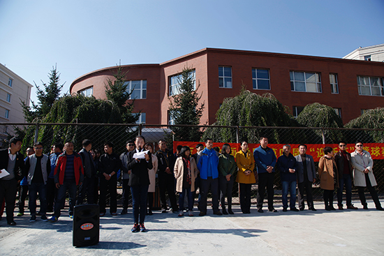 学工部副部长盖凤明宣布本届篮球赛开幕(陈文佳 摄)
