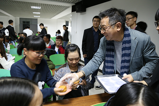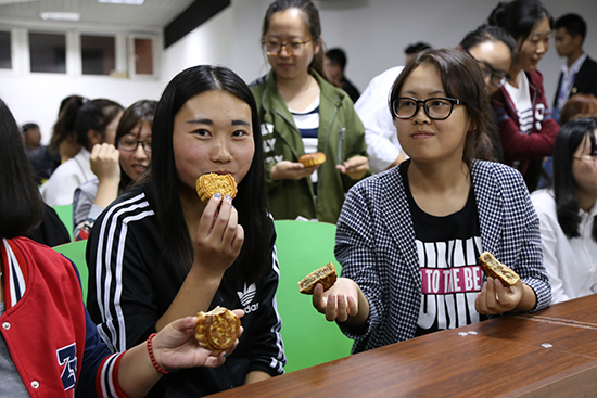 中秋将至,广告学院的领导老师向2015新同学分发月饼,表达老师们对新生及其家人美好的祝福。浓浓中秋情,暖暖师生意,同学们口中吃着甜甜的月饼,留下了2015级新生见面会最温馨的一幕。