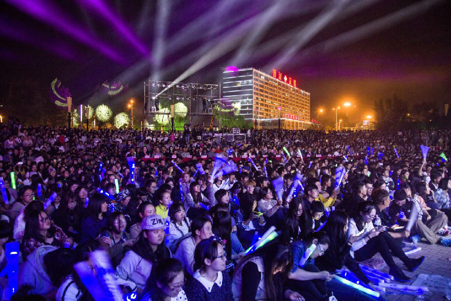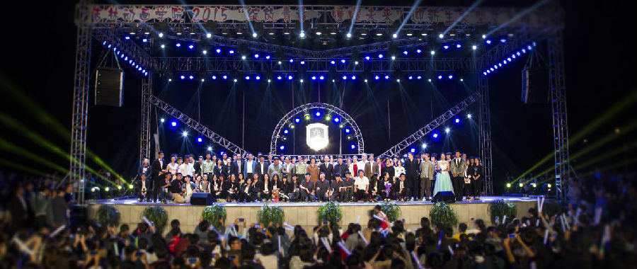 历届校园十佳歌手石浩钰、仲祥成、明庭伟、王野倾情助阵,伴随着歌曲串烧《闪耀明天》,2015迎新生大型文艺晚会顺利落下帷幕。