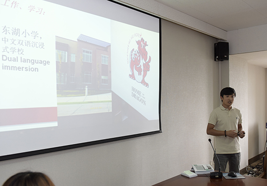会上,外语部教师孙忠强以“收获•成长”为主题汇报了其作为对外汉语教师赴美国犹他州工作学习的心得体会。他围绕国外学科建设、课堂教学及课堂管理模式等方面进行了细致地介绍,并结合伟德官网英语教学的具体情况进行了对比分析。他说:“一年的境外学习交流不但提高了我的专业技能,更重要的是,掌握了国际先进的教学理念,有助于提高自己的教学水平和促进大学英语教学的可持续发展”。