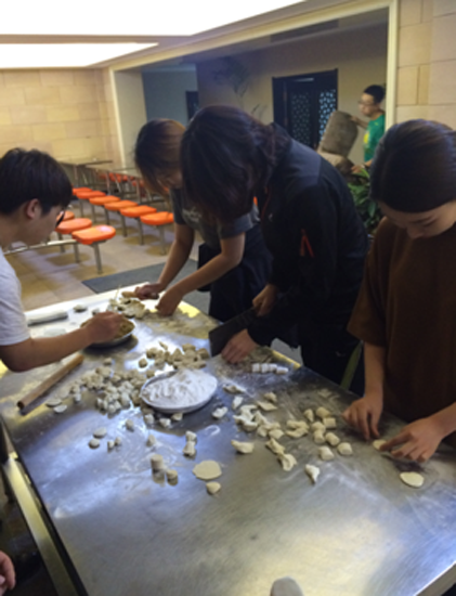 留学生们热情高涨,积极参与,各显身手。在食堂厨师的指导下,同学们体验了包饺子的全部过程。和面、擀皮、包馅,每一步对韩国学生来说都是那么的新奇,同时又充满魅力。他们相互鼓励,相互帮忙,又相互竞赛。随着熟练程度的提高,他们的饺子模样也从最开始的中规中矩变得各式各样,有圆形、三角形、包子形、球形、UFO形,在愉快的交流与实践中,收获了成功的喜悦。