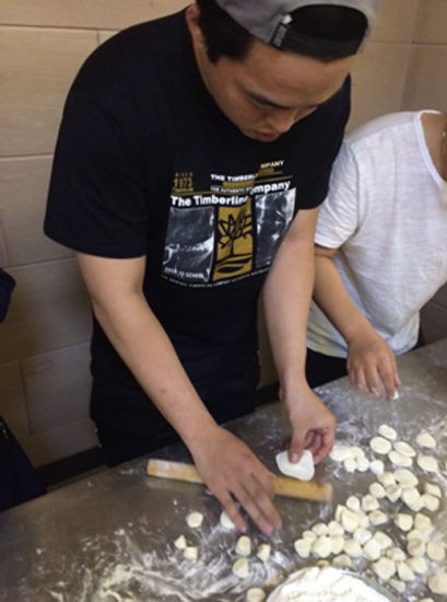 头一次拿擀面杖的全民佑学生正在认真擀面皮