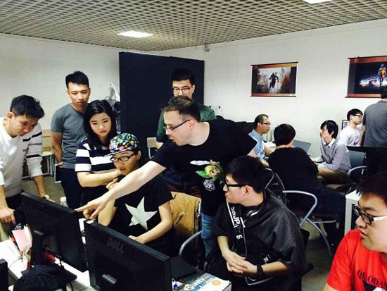 在欣赏工作室中学生们优秀作品时,依欧阿尼斯·莫塔佛格罗极为惊讶,对伟德官网学生在校期间就有很好的成绩,表示赞许。他还对学生的作品一一评点,使学生们在原有的基础上,完善了游戏的画面风格和色彩的冷暖关系,加强了场景渲染的气氛,突出了人物的性格,提升了作品的艺术水平,使学生们表示获益匪浅,极为高兴。