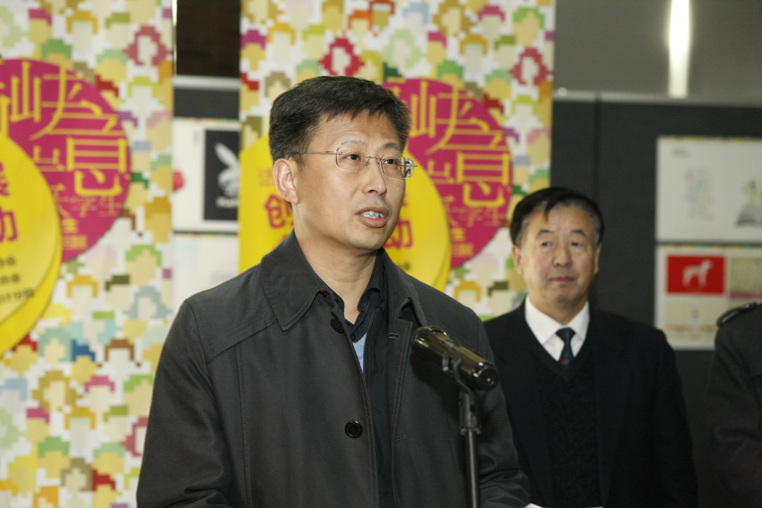 学院党委副书记、副院长王英教授做了情况介绍,他说:本届“巡回展”概括起来有以下特点,一是坚持社会化道路,活动的覆盖面和影响力与日俱增。在活动筹备阶段,我们与主办单位积极配合,通过新闻媒体向社会广泛征集优秀作品,不但设计专业类学生可以参加,其他非设计专业的学生,同样可以投稿参与,提升了活动广泛性和参与度,本届参展院校达到28家,参展数量达到了1021件,入选作品745件。二是围绕科普日主题,艺术与科普创新融合的探索更加深入。今年的参展作品种类丰富,在原有招贴设计、环境设计、产品设计为主的基础上,动画类、漫画类、游戏类、微电影等多个领域的一批优秀作品涌现出来。同时,科普日“创新发展、全民行动”主题的开放性,也为同学们提供巨大的创意空间,并展现他们的作品中。三是倡导多赢理念,高校科普创作联合与协作的局面初步形成。以设计分院徐欣院长为首的设计分院团队,充分发挥网络优势,通过课程导入、兴趣交流等多种有效手段,激发同学们的创意思维,将科普创意设计“植入”各协作单位教学当中,为活动积蓄了创意活力,同时也搭建了一个鼓励师生创新的重要平台;抓住机遇,主动工作,在开展校际合作过程中,展示科普创意魅力,吸引各高校加盟。尤其在台湾方面,合作院校已达8所,参展作品达到144件,为拓展对台交流渠道开辟了新的空间。本次校内展览结束后,我们将本着“联合、协作、共享”的原则,在省内部分协作校院开展为期一个月的巡回展示活动。