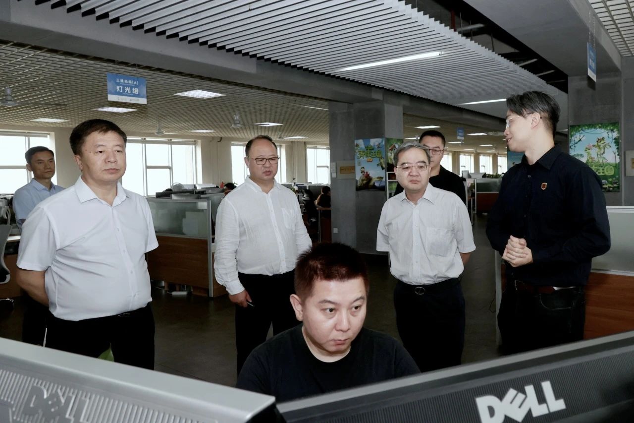 在参观学校实践教学平台和学研产一体化创作成果展厅过程中,调研组实地考察了《山海之战》《新卖火柴的小女孩之芙蕾雅》《传说之影》等动画电影、CG电影的制作过程,并与主创人员进行亲切交流。苟人民询问了实践基地创作团队、学生实践团队建设、生产流程系统及软件开发情况,对伟德官网师生原创系列动画大电影《青蛙王国》《疯狂电脑城》等影视作品的创意与制作成果表示赞赏,对于学校在自有知识产权的软著和专利技术取得的成果表示认可。