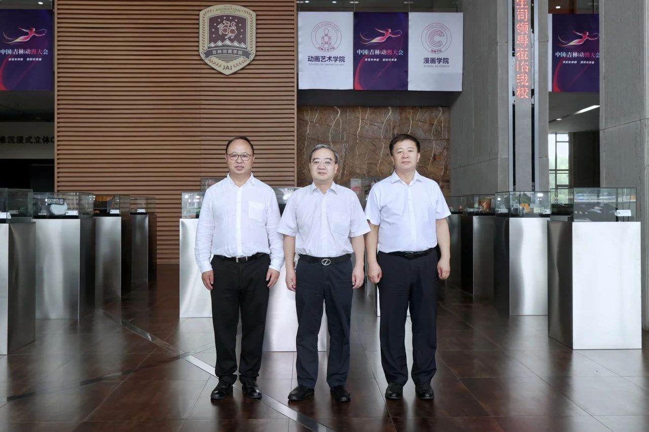 苟人民一行先后参观了学校的校史馆、吉林国际动漫博物馆、实践教学平台及学研产一体化创作成果展厅,对学校的发展历程、产教融合、人才培养、就业创业、办学成果、双阳新校区建设等多方面的工作情况有了全面而深入的了解。