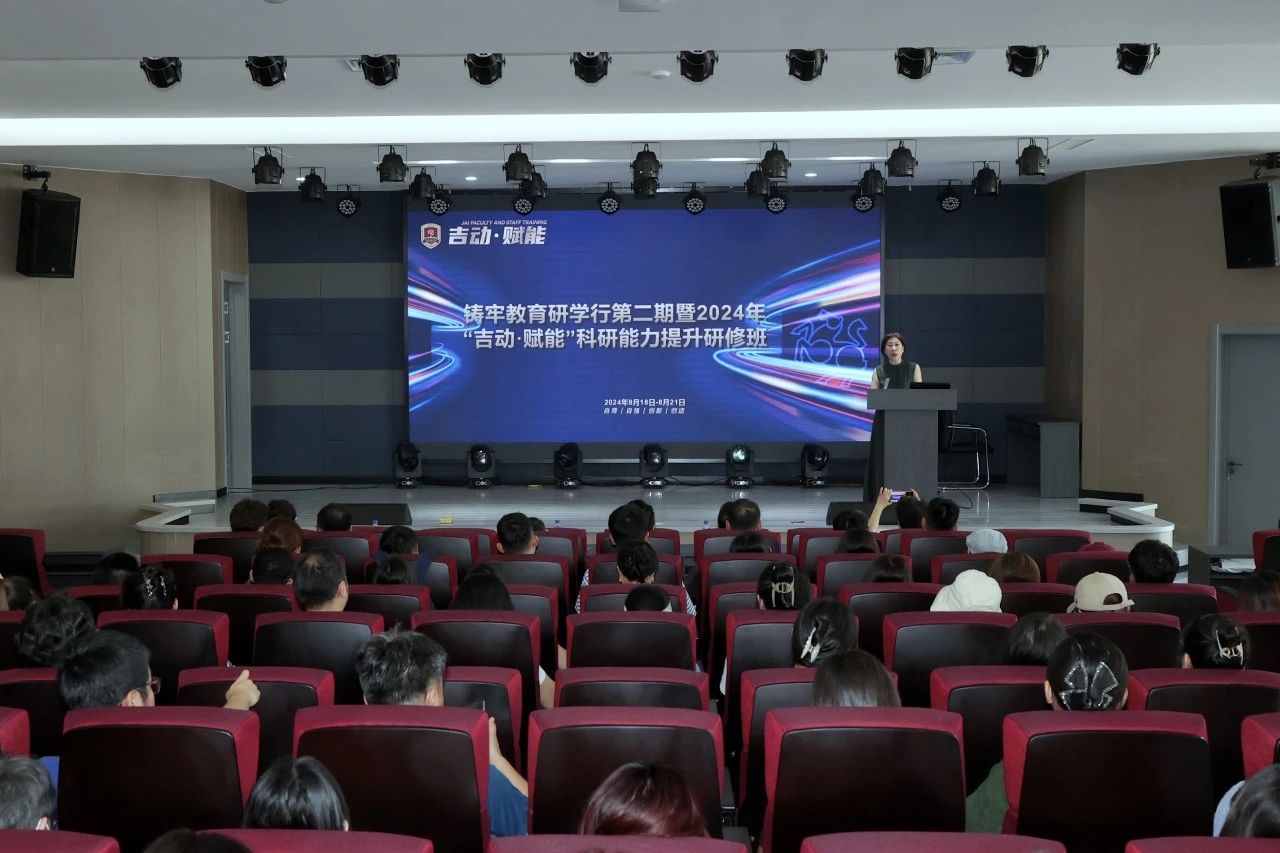 刘欣致辞中赞扬“吉动力量”的了不起。刘欣表示,学校结合“学研产一体化”办学特色和发展实际,全力推动科研工作、全力打造科研团队、全力改革科研奖励机制。将分层分类分阶段的推出科研能力提升计划、奖励政策,鼓励老师们投入到科研工作中。刘欣说:“只有老师们的教学科研能力得到提升,学校的教学质量才能同步提升!”她期望参与本次研修班的老师在回归工作岗位后,充分发挥自身能量,带动身边的青年教师借助学校搭建的平台,依靠自身的努力以及利用学校整合的资源,共同提升教学和科研能力。