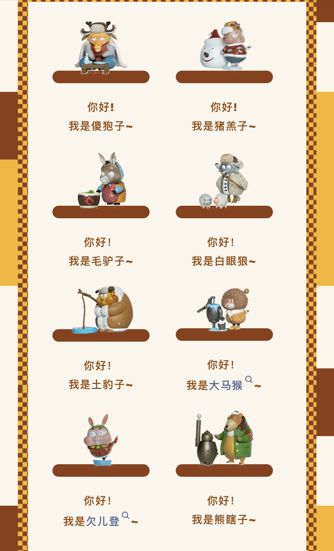 《东北神兽-“兽揽人心”》系列盲盒以东北地区的神兽传说为灵感源泉,巧妙结合东北民俗风情,通过风趣幽默的创意设计,将传统动物形象赋予拟人化的特质和情感,使它们更加萌动可爱。盲盒设计巧妙融入东北特色元素,如色彩斑斓的东北大花袄、古朴的洋井、温馨的炕桌以及冬季特有的冰钓场景等,不仅展现了东北人民的风俗习惯和地域文化,也让这些神兽形象更加鲜活、接地气,深受参观者喜爱。