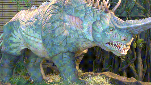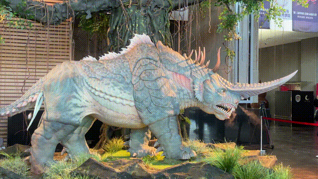 “山海神兽智能仿生系列展”展览的是大型仿生机械实体雕塑《山海经》中的神兽——兕。该雕塑实体规模颇为壮观,长达5米,高2米,俨然一个庞然大物屹立在展厅之中。走近观赏,便能发现其制作工艺的精湛。细腻的皮肤纹理犹如真实生物一般,每一道纹路都仿佛诉说着岁月的故事;动作灵敏、精细,神态逼真,眨眼、昂首、甩尾、抬腿等,一举一动都充满了灵动之感,仿佛赋予了这上古神兽鲜活的生命,让现场的观众无不叹为观止,纷纷驻足欣赏,沉浸在这奇妙的仿生艺术氛围之中。
