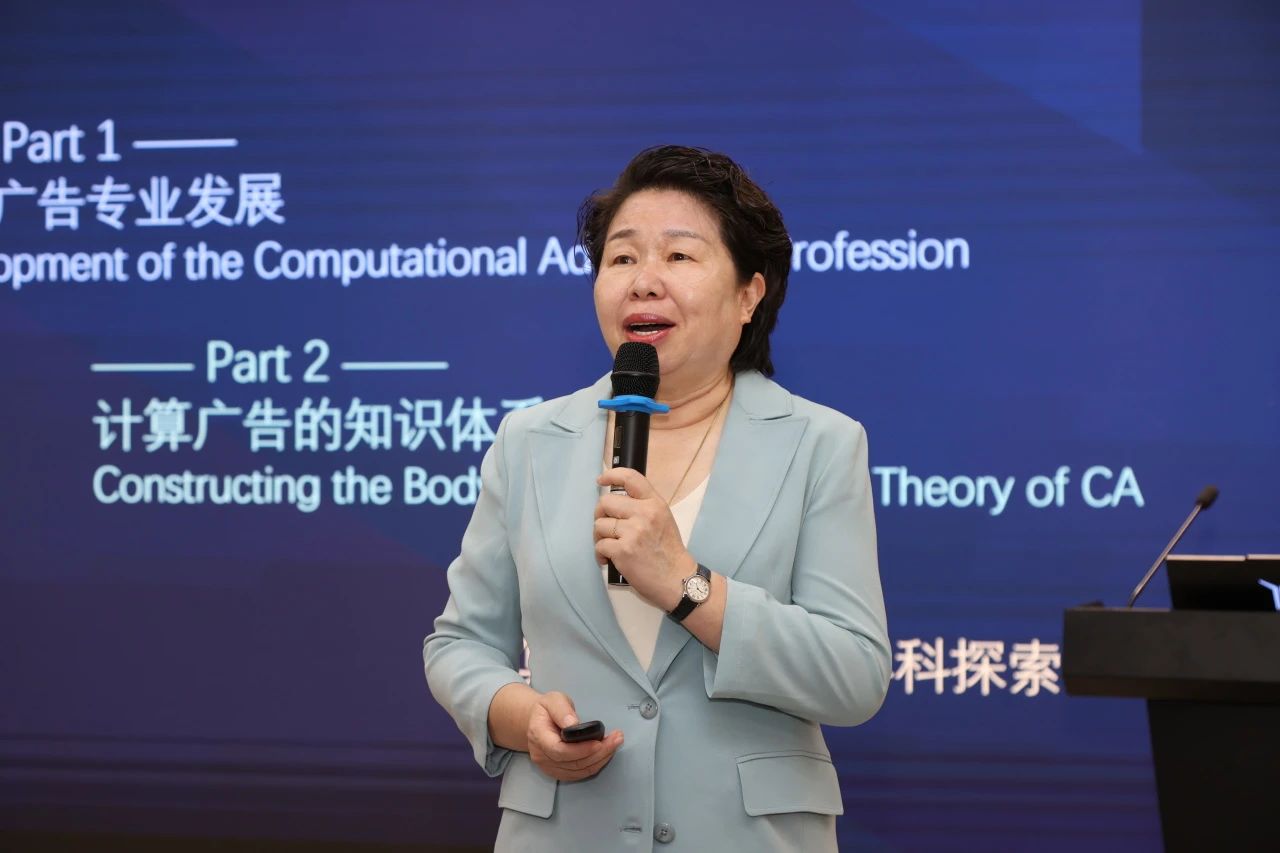 段淳林教授讲授了两个主题课程,分别是“计算广告的专业发展、知识体系与理论的建构、交叉学科的探索”和“顶层设计——高端品牌构建原理与全球化战略实践”。她指出,计算广告学是一个新型科技的应用型交叉学科,核心问题是解决特定广告用户的需求和自主批评问题,实现个性化营销和精准匹配;对中国高端品牌发展,她提出,要注重品牌战略的长期建设,从系统工程角度出发,构建消费人群,形成用户心智的长期记忆。中国品牌要从文化价值向精神价值发展,讲好中国品牌故事。